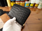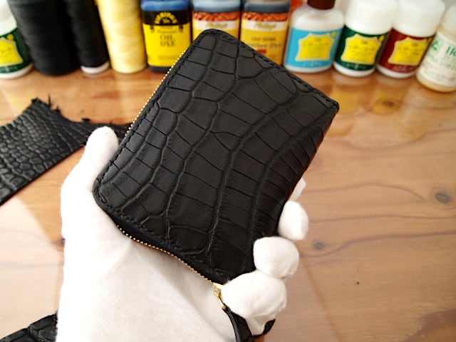 高級感溢れるクロコダイルを使用したジップウォレットで、内装にはイタリアヌメ革のブラックを採用。手に馴染むサイズ感と、美しい質感が特徴です。静かに開閉できるジッパーは、安心感と上品さを兼ね備えています。