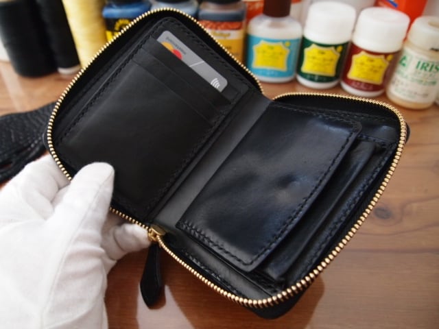 ■ボタン式のコインケース、カード4枚×2、お札入れ、フリーポケット3
