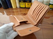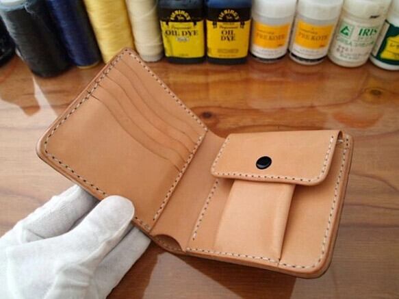 ■ショートサイズ2つ折り、ボタン開閉式コインケース、お札入れ1(2層構造)、カード5枚