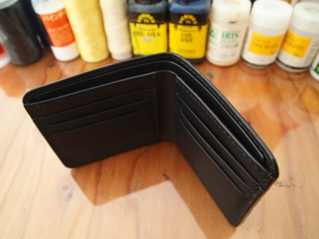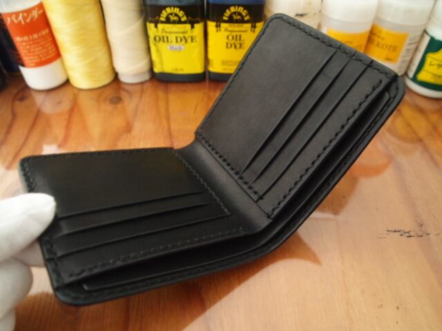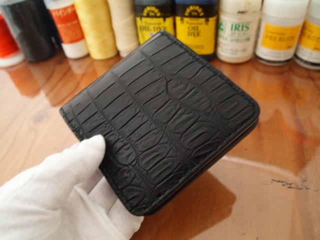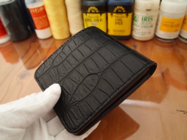 【オーダー】クロコダイルの本革で作る札入れ総手縫いの2つ折ショートウォレット財布黒ブラック×ヌメ革